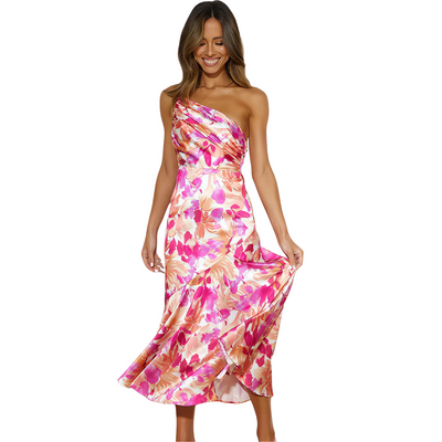 Maison Svala™ | Asymmetrisk blommig midiklänning