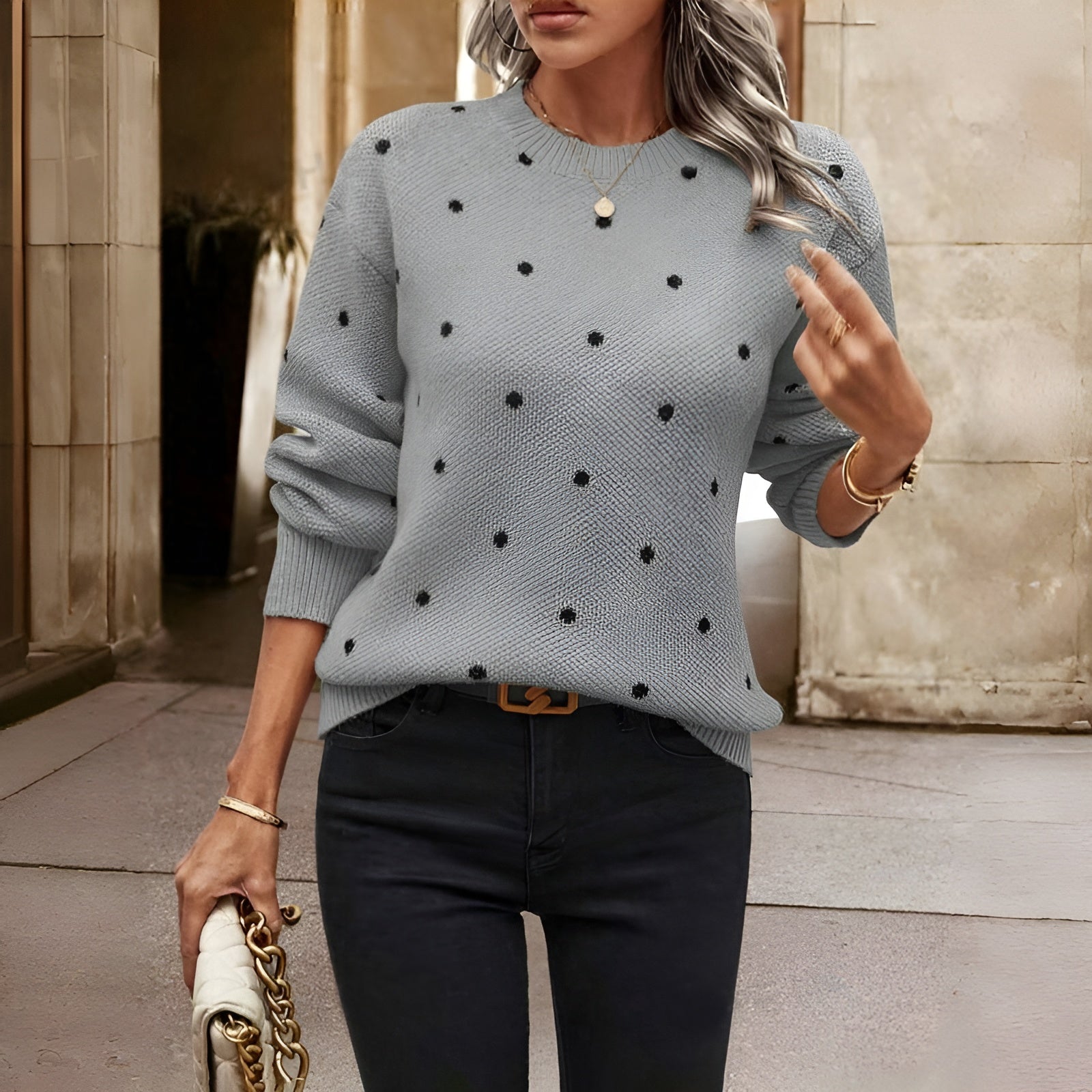 Njut av ultimat komfort och en trendig look med Amy™. De lekfulla prickarna ger din outfit det lilla extra, samtidigt som det mjuka, andningsbara materialet håller dig varm utan att du blir svettig. Perfekt att kombinera med jeans för en avslappnad känsla eller med en kjol för en chic touch.